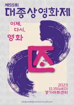 The 59th Grand Bell Awards (Korean: 제59회 대종상 영화제; RR: Daejongsang Yeonghwajae), also known as Daejong International Film Awards, is determined and presented annually by The Motion Pictures Association of Korea for excellence in film in South Korea.[1] The Grand Bell Awards were first presented in 1962 and have gained prestige as the Korean equivalent of the American Academy Awards.[2] The 59th edition of the award ceremony was co-hosted with the Gyeonggi Arts Center for the first time at the Gyeonggi Arts Center Grand Theater and Convention Hall on November 15, 2023.[3] Cha In-pyo and Jang Do-yeon were master of ceremonies for the award night.[4]
