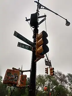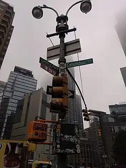 Historically, West 59th Street ran from Ninth/Columbus Avenues to Columbus Circle as well. In 1954, that city block of 59th Street was decommissioned to make way for the New York Coliseum complex.[12] The Coliseum, in turn, was demolished and replaced with Time Warner Center in the early 2000s.[13]