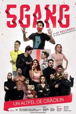 5Gang: Another Kind of Christmas (Romanian: 5GANG: Un altfel de Crăciun) is a 2019 Romanian action comedy film directed by Matei Dima. It stars Selly, Diana Condurache, Andrei Gavril, Luca Bogdan Adrian and Mădălin Șerban Păcurar, members of the real-life trap group 5GANG, as themselves in a fictional story about their musical band; when Selly is kidnapped after performing at the anniversary of a local crime boss' daughter birthday, the other band members have to rescue him.