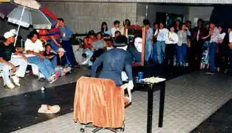 From 26 December 1993 to 1 January 1994, the Artists' General Assembly (AGA) was held at the 5th Passage art space, an arts festival that the initiative co-organised with The Artists Village.[9] During the 12-hour AGA New Year’s Eve show from 31 December 1993 to 1 January 1994, Josef Ng staged a performance work, Brother Cane, in protest at the arrest of 12 homosexual men during anti-gay operations in 1993, whose personal details were published in local mainstream newspapers.[14]