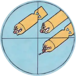 - ^ The emblem was designed by Milton Caniff. The three bombs represent Roosevelt, Stalin, and Churchill. Closway, p. 5.