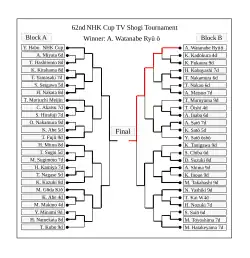 - ^ a b "Dairokujūnikai NHKhai Terebi Shōgi Tōnamento" 第62回NHKテレビ将棋トーナメント [62nd NHK TV Shogi Tournament] (in Japanese). NHK. Archived from the original on January 22, 2013. Retrieved August 22, 2018.