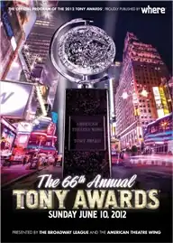 4. ^ Gans, Andrew (January 17, 2012). "66th Annual Tony Awards Set for June 10". Playbill. Archived from the original on January 20, 2012. Retrieved January 12, 2012.
