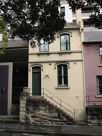 67 Harrington Street, The Rocks is a heritage-listed serviced apartments complex and former terrace house located at 67 Harrington Street, in the inner city Sydney suburb of The Rocks in the City of Sydney local government area of New South Wales, Australia. It was built from 1885. It is also known as Stafford Apartments and 75 Harrington Street; Clocktower Development. The property is owned by Property NSW, an agency of the Government of New South Wales. It was added to the New South Wales State Heritage Register on 10 May 2002.[1]
