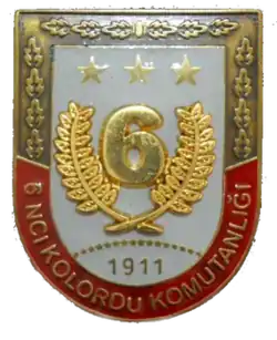 The 6th Corps (Turkish: 6. Kolordu) is a field corps of the Turkish Army. It is headquartered at Adana in Adana Province, and is part of Second Army.