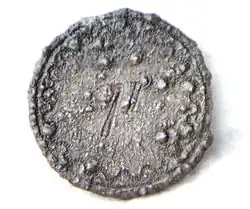 The two new 71st companies remained in South Carolina until the final evacuation of Charleston on 18 December 1782. The officers of the Second 71st set sail for England in the 203-ton ship Moor, while the remaining men of the 71st Regiment, numbering only 189, were to sail on the 319-ton ship Sally bound for Jamaica.[11] Some of the ships leaving Charleston were bound for St. Augustine, Florida, and it appears likely that at least one member of the 71st was shipwrecked at that port, as archaeologists from the Lighthouse Archaeological Maritime Program have discovered a pewter button from a 71st Regiment uniform on a shipwreck site that appears to date to the 1782 evacuation of Charleston.[12] The regiment was disbanded in Scotland in 1786.[1]