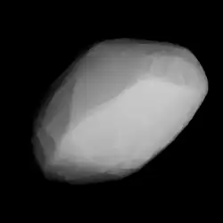 - ^ Hanus, J.; Durech, J.; Oszkiewicz, D. A.; Behrend, R.; Carry, B.; Delbo, M.; et al. (February 2016). "New and updated convex shape models of asteroids based on optical data from a large collaboration network". Astronomy and Astrophysics. 586: 24. arXiv:1510.07422. Bibcode:2016A&A...586A.108H. doi:10.1051/0004-6361/201527441. S2CID 119112278.