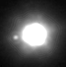 ![]() 762 Pulcova and satellite as seen with adaptive optics in 2000[1] | |