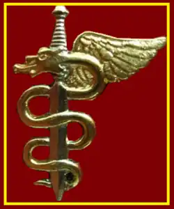 Unlike the rest of the SAMHS insignia, 7 Medical Battalion's caduceus insignia differs by virtue of it having a dagger instead of a staff.