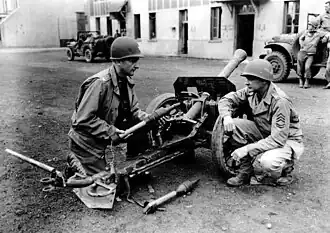 ![]() The 8.8 cm Raketenwerfer 43 being inspected by Allied troops. Note the presence of the wrong ammunition [a] | |