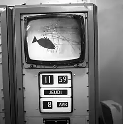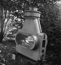 The chamber operated at CERN on loan from Saclay but in 1966 CERN took full responsibility for the project and a thorough overhaul to the chamber was made.[1][10] After 10 years of magnificent performance the 81 cm Saclay bubble chamber was decommissioned in 1971. It acquired 16.1 million photographs, 5315 km of film, and approximately 150 thousand million bubbles.[11][12] It is now situated at the terrace outside Restaurant 1 in CERN.[13]