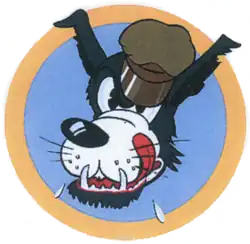 - ^ Approved 3 May 1945. Description: Over and through a medium blue disc, border golden orange, a caricatured gray wolf's head, trimmed black, mouth and tongue red, wearing an olive drab service cap tilted over the left eye. Maurer reverses the approval dates for the 865th and 866th Bombardment Squadrons.