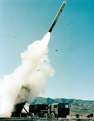 Training launch of a BGM-109G Gryphon from its Transporter-Erector-Launcher at the Utah Test and Training Range in November 1982 | |
