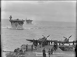 The squadron returned to the Fleet Air Arm on 21 July at RNAS Hatston (HMS Sparrowhawk), Mainland, Orkney, and then embarked in the Illustrious-class aircraft carrier HMS Victorious to help provide fighter cover for the Malta convoy Operation Pedestal.[3]