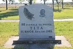 88 Trees for Comrade Tito (Serbo-Croatian: 88 стабала за друга Тита, romanized: 88 stabala za druga Tita, Slovene: 88 dreves za tovariša Tita[1]) was an initiative undertaken in many communities all around Yugoslavia after the death of its long-time president Josip Broz Tito, with a goal to create memorial alleys made up of 88 trees. This number was symbolic as Tito died at the age of 88 on 4 March 1980. 88 Trees initiative was officially launched on 1 April 1981, but planting of 88 trees had already started in some places soon after Tito's funeral. The initiative was officially approved by the Socialist Alliance of Working People (SSRNJ) based on a proposal by the Yugoslav Association for the Protection and Improvement of the Human Environment, although they claimed the idea came "spontaneously" from many places.