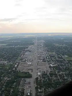 8th Street East begins at the Lorne Avenue/8th Street West, which provides access to northbound and from southbound Idylwyld Drive. It passes through the residential neighbourhood of Nutana as a treelined four lane street with a boulevard, intersecting Broadway Avenue and forming the southern boundary of the Broadway Business Improvement District. East of Clarence Avenue it becomes one of the city's main suburban commercial districts with many shops and businesses located along the roadway, including a major regional shopping centre near Circle Drive, as well as several strip malls. Until the 1980s–early 1990s it also featured a number of motels and hotels, but these were gradually demolished in favour of retail development. The commercial development ends east of McKercher Drive, and it downgrades to a two-lane road east of Boychuk Drive. After crossing a set of railway tracks, 8th Street East becomes semi-rural and becomes a gravel road east of Brighton Boulevard. After leaving the city limits, it becomes Township Road 364 and travels through the eastern part of Corman Park Rural Municipality to Highway 316 in the RM of Blucher near Patience Lake.