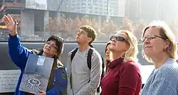 The 9/11 Tribute Museum has trained volunteer guides who all have personal 9/11 experiences.[14] The museum had 900 trained tour guides, some of whom came from as far away as Northern Virginia.[15] Tours took visitors on a walk through the 9/11 Memorial Plaza, with stops at other significant locations such as the Firefighters' Memorial Wall and the Survivor Tree. These tours ceased when the museum closed its physical location on August 17, 2022.[16]