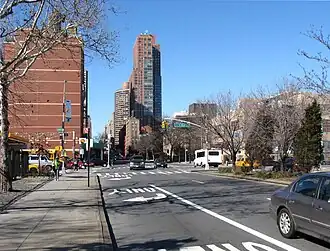 The M96 bus line serves 96th Street from West End to First Avenues (eastbound) and from Second Avenue to Broadway (westbound). The M106 duplicates service on the western portion of the street and connects with East 106th Street via Madison Avenue eastbound and Fifth Avenue westbound.[18] In September 2024, the New York City Department of Transportation proposed adding an offset bus lane to 96th Street between West End and First Avenues. Upper West Side residents expressed opposition to the addition of bus lanes from Amsterdam Avenue to Central Park West.[19][20] The NYCDOT began adding bus lanes between West End and Second Avenues that October,[21] and the bus lanes were completed that December.[22][23] Local residents filed a lawsuit seeking the bus lanes' removal, but the New York Supreme Court rejected the lawsuit in June 2025.[24][25]