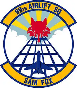 | 99th Airlift Squadron emblem (approved 24 April 1989)[1] | ![]() |
