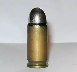 9mm Browning Long is similar to 9×19mm Parabellum, but has a slightly longer casing and is semi-rimmed; the cartridge headspaces on the rim. The cartridge was developed by FN to be used in the blowback-operated Model 1903, a pistol designed using the same Browning patent as the Colt 1903. Using a more powerful cartridge, such as the 9×19mm Parabellum, would have required a locked-breech design. Ammunition was produced in Belgium, France, England, Sweden[7] and the United States. There was some production in Germany during World War I for the Ottoman Empire, and the cartridge was also used in South Africa.[8]