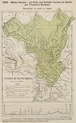 The police forces of Mato Grosso were not strong enough to rival the army, unlike the "state armies" in stronger states.[41] In states like Minas Gerais and São Paulo, military officers were largely excluded from partisan politics. However, in Mato Grosso—a politically minor state dependent on the federal government—officers had a long history of holding public office. Their social status and prestige were comparable to those of officers in Rio Grande do Sul, where they engaged in local political disputes through alliances and family ties.[42][41][43] The local government was led by military personnel for much of the Brazilian Empire and on five occasions during the Republic.[44]