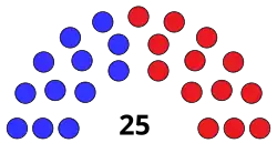 | End of previous Legislature | 13 | 1 | 11 | 25 | 0 |
