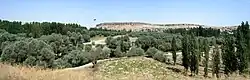 It is situated 1,119.5 metres (3,673 ft) above sea level, a little higher than the region's average of c. 1,000 metres (3,300 ft). The site itself is about 4 hectares (9.9 acres),[2] considerably smaller than the closely situated site of Çatalhöyük (13 ha (32 acres)).[3][4] The surrounding landscape is formed by erosion of river valleys into tuff deposits. The Melendiz Valley, where the Aşıklı Höyük is located, constitutes a favourable, fertile, and diverse habitat. The proximity to an obsidian source did become the base of a trade with the material supplying areas as far away as today's Cyprus and Iraq.[2][5]