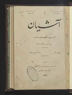 The Ottoman journal Aşiyan (Arabic: آشیان; DMG: Āšiyān; English: "Home") was published in Istanbul between 1908 and 1909 in a total of 14 issues.[1] The content focused on literary, scientific and political topics.[2] One of the most famous writers of Aşiyan is Halide Edib Adıvar (1884-1964), a popular Turkish nationalist, writer and feminist. She published a range of articles that dealt with the women's position in the Ottoman Empire, the modernization of women and the criticism of former politics.[3]