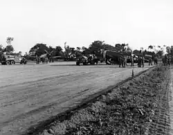 The fighter aircraft flew support missions during the Allied invasion of Normandy, patrolling roads in front of the beachhead; strafing German military vehicles and dropping bombs on gun emplacements, anti-aircraft artillery and concentrations of German troops when spotted.[6] In addition to the fighters, elements of the 416th and 322d Bomb Groups dispatched B-26 Marauder medium bombers from their bases in England to Saint-Pierre-du-Mont to attack German strong points in Normandy during the initial battles around Saint-Lô