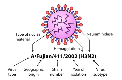 "A/Fujian/411/2002-like (H3N2)"[6] and "Influenza A/Fujian/411/02(H3N2)-lineage viruses"[7] are examples of using the full name of the virus strains.
