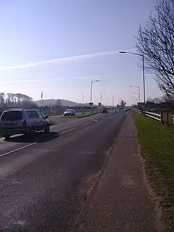 As the road stretches off to Sheringham it passes under a railway bridge carrying the North Norfolk Railway. The road now passes through a stretch of land that is owned by The National Trust. As then runs right alongside the A149, squeezed between the road and the Sheringham Golf Club which is set on the cliffs in an Area of Outstanding Natural Beauty. The mini roundabout at Sheringham it is 48.2 miles (77.6 km) from the start of the A149 at King's Lynn.