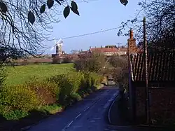 The road now rises away from the marshes and twists and turns into the next village of Kelling. The road now passes through the gentle and heaths of Kelling Heath and Weybourne. Just before entering the village of Weybourne, the road passes Weybourne Camp on the left. The road now passes through the village of Weybourne (45.5 miles (73.2 km)) and up a hill past the village Windmill.