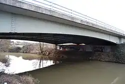 South of the M20, the route again diverts onto a 2006 bypass to the west of the old route village,[5] which then passes under the A20 (a road that it used to meet) and then joins the West Malling Bypass, which was built in 1988[6] then upgraded to dual carriageway in the 2000s.