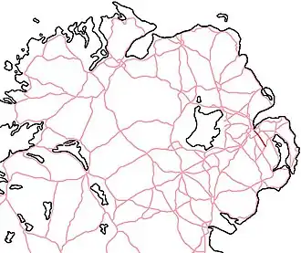 The A23 is an 8.7-mile-long (14.0 km) road in County Down, in Northern Ireland. The route starts in near the Short Strand district in east Belfast and follows the Castlereagh Road through the southeastern suburbs of the city. Upon passing through the A55 Outer Ring Road, the A23 becomes the Ballygowan Road. It passes through the Castlereagh Hills and finishes in the village of Ballygowan at a roundabout with the A21.