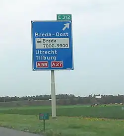 | North Brabant | Breda | — | West end of A58 and E 312 overlap | |||