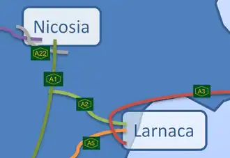 | Nicosia–Larnaca Αυτοκινητόδρομος Λευκωσίας–Λάρνακας Lefkoşa-Larnaka yolu | ||||
