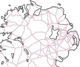 The A36 is a road in Northern Ireland. It travels through County Antrim, connecting the large towns of Ballymena and Larne.[1] The road is a single-carriageway primary route. It has three named sections: Church Road, Moorfields Road, and Shane's Hill or Shaneshill (Road).[2][3]