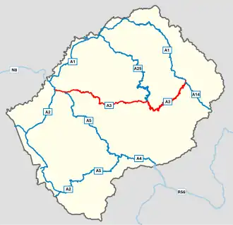 The A3 is one of the main highways of Lesotho in southern Africa. The A3 crosses the Mokhoabong Pass between the towns of Mantsonyane and Thaba-Tseka.