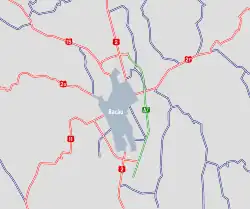 The A7 motorway (Romanian: Autostrada A7),[1] also known as the Ploiești–Siret Motorway (Romanian: Autostrada Ploiești–Siret) or the Moldavia Motorway (Romanian: Autostrada Moldovei),[2] is a partially built motorway in Romania, that upon completion will link Ploiești to the north-eastern part of the country, partly along the Pan-European Corridor IX. It will run along the route: Buzău, Focșani, Bacău, Roman, Pașcani, and Suceava, connecting to Ukraine's M19 highway near Siret.[3]