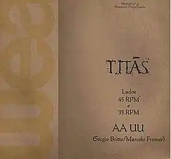 "AA UU" is the fourth single by Titãs, released in 1986. Most of this song consists simply of Sérgio Britto screaming "AA", while the other vocalists reply with "UU". The band Símios made a cover of this song. The song was featured on the Rede Globo telenovela Hipertensão[1] and on the soundtrack for the 2008 film Meu Nome Não É Johnny.[2]