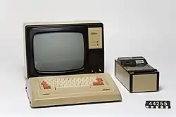 The ABC 80 was based on an earlier modular computer system from the same company[5] and built around a Z80 and 16 KB of ROM containing a fast semi-compiling BASIC interpreter. It had 16–32 KB of RAM as main memory and a dedicated (included) tape recorder for program and data storage, but could also be expanded to handle disk drives as well as many other peripherals. The ROM could be extended in increments of 1 or 4 KB in order to handle such so called "options". The monitor was a black and white TV set modified for the purpose, an obvious choice since Luxor also made TVs.