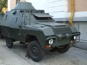 In June 1978, the Romanian government expressed their desire to have an armored car based on the ARO 240 vehicle that was equipped with a machine gun.[3] It was to be supplied to airport security units. A prototype was completed by the end of the year. On May 27, 1979, Nicolae Ceausescu ordered the manufacture of a batch of armored vehicles to parade at the August 23 military parade.[4] The armored car, known as the ABI, was also presented to the Romanian Army, but it was rejected and solely used for airport security.[5] 17 ABIs made their appearances in the military parade on August 23, 1979.
