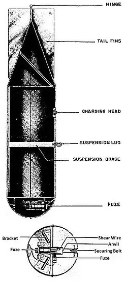 - Type II - The tail of this bomb was constructed of four corrugated sheet metal pressings without bracing that were riveted together then crimped onto two annular grooves in the bomb casing.[3]