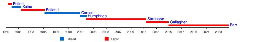 - ^ Andrew Barr's time in office as of 20 August 2025