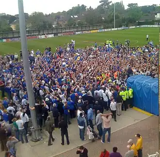 AFC Wimbledon spent most of the 2008–09 season near the top of the league table, eventually finishing as champions and earning promotion to the Conference Premier after defeating St Albans City 3–0 on 25 April 2009.[33] The match set an attendance record of 4,722 for Kingsmeadow stadium, which at that time was full capacity.[34]