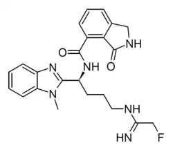 AFM-30a is an experimental drug which was the first selective inhibitor to be developed of the enzyme peptidylarginine deiminase 2 (PAD2). It has been used to investigate the role of PAD2 in various inflammatory conditions and development of cancers. It was found to be active against pulmonary fibrosis in a mouse model.[1][2][3][4][5]