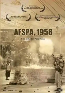 AFSPA, 1958 is a 2006 Manipuri documentary film directed by Haobam Paban Kumar in his directorial debut[1][2] and produced by Bachaspatimayum Sunzu and Haobam.[3] The film won the National Film Award for Best Non-Feature Film at the 56th National Film Awards.[4]