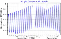 A light curve for AF Leporis, plotted from TESS data[12]