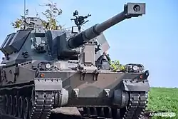 Main armament | 155 mm/52-calibre howitzer 40 rounds (29 turret, 11 hull) |