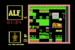 As ALF, the player has to run around and collect pizzas and parts for his starship while trying not get caught by Willie Tanner, as Willie will take away all of ALF's possessions, forcing him to start over again. ALF must also grab cats, but ALF must eat a pizza before a cat can be picked up.[4][5] Getting caught by the dog catcher is an alternative form of "punishment" in the game; only the player's nemesis Willie can release him from the pound. Since Willie is unable to rescue ALF after being locked up the third time, the situation eventually becomes an automatic game over. All versions of the game have a strict time limit to accomplish everything.[2][4] They also have ALF claiming the player's loss is being blamed "on the alien." Players who make the high score become members of the Honorary Melmac Skleen Club, which consists of the high score list and an in-joke for fans of the television series.